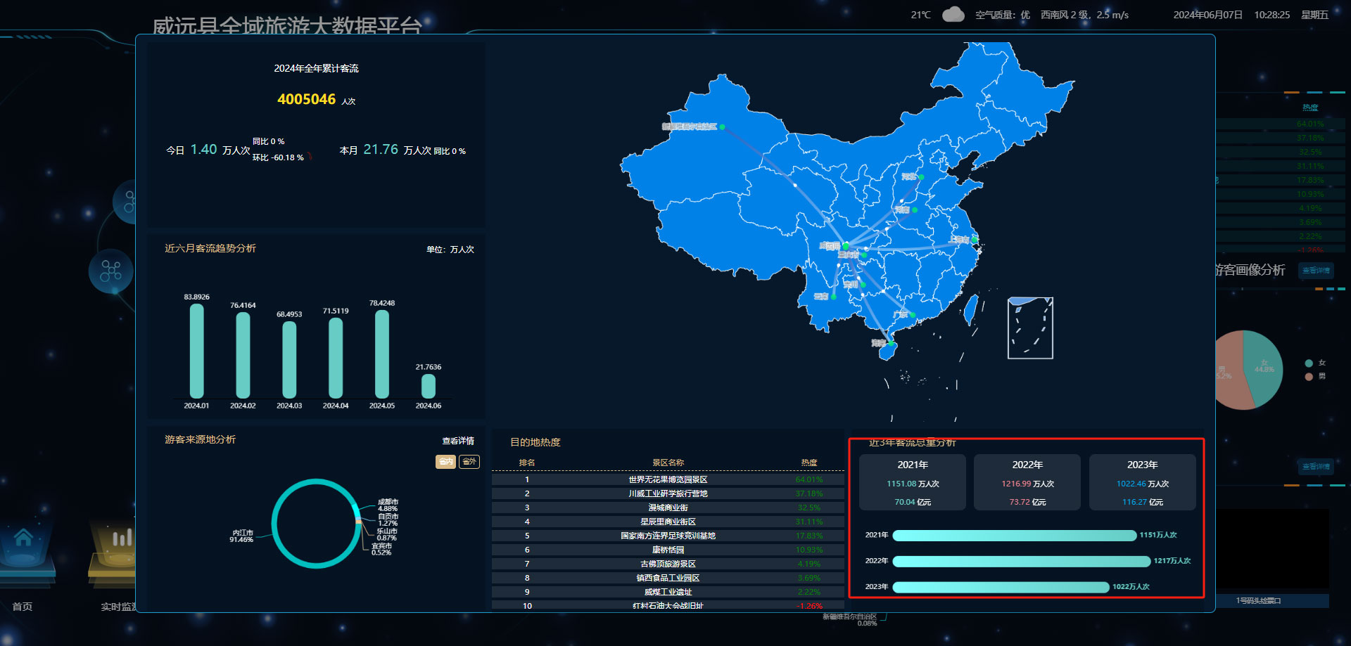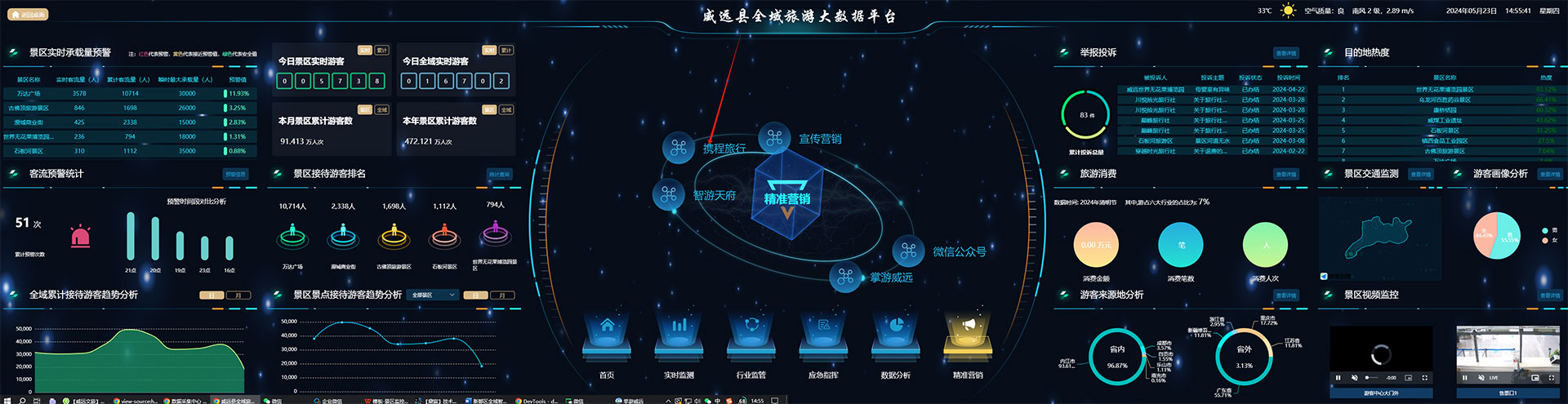威远县全域旅游大数据平台旨在充分运用云计算、大数据、物联网、GIS和GPS等现代信息技术,将分布在涉旅部门、涉旅行业、涉旅企业、涉旅网站的分散数据整合存储到库中,为后期运用旅游大数据进行统计分析、预警监测、助产发展、管理决策等提供数据支撑。横向打通威远县涉旅部门与威远县文化广播电视和旅游局之间政务级高速数据通道,纵向贯通平台与旅游企业、旅游平台之间的标准化数据接口,切实解决数据孤岛、数据烟囱等问题,运用数据测算模型,实现数据存储清洗、数据采集挖掘、统计分析处理、宣传营销推广、智慧旅游监管、对外交流合作、旅游公共服务等建设,为政府决策提供依据支撑,为企业经营提供资源共享,为公众出游提供精准服务。